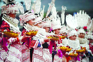 L’etnia Miao conta circa 9.000.000 di persone, che hanno la propria lingua, suddivisa in tre dialetti. I Miao che risiedono in zone abitate anche da altre etnie sanno parlare anche il mandarino o le lingue Dong e Zhuang. I Miao non hanno avuto una scrittura unificata fino al 1956, anno in cui è nata la trascrizione fonetica basata sull’alfabeto latino. Per quanto riguarda la fede religiosa, i Miao professano l’animismo.